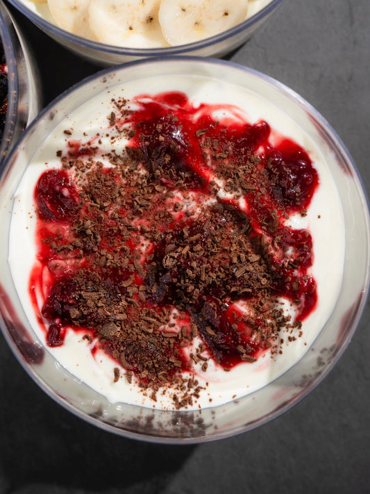 28gm Protein: PB, Banana & Choc Overnight Oats